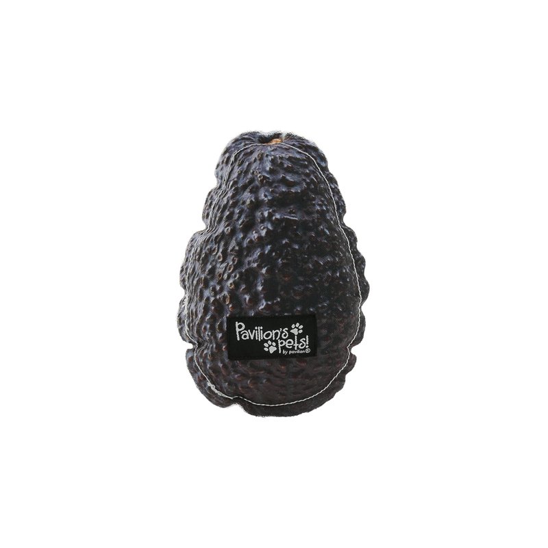 - PREMIUM QUALITY: This 6.5" tall, 4.5" long & 1.5" wide realistic avocado dog toy is made from durable materials—polyester and natural cotton. The edges of the toy have a weathered rustic look. The fluffed-up polyester fiber-filled center with white stitching shapes contains a single plastic squeaker with a branded tag below on the backside.