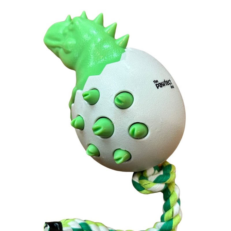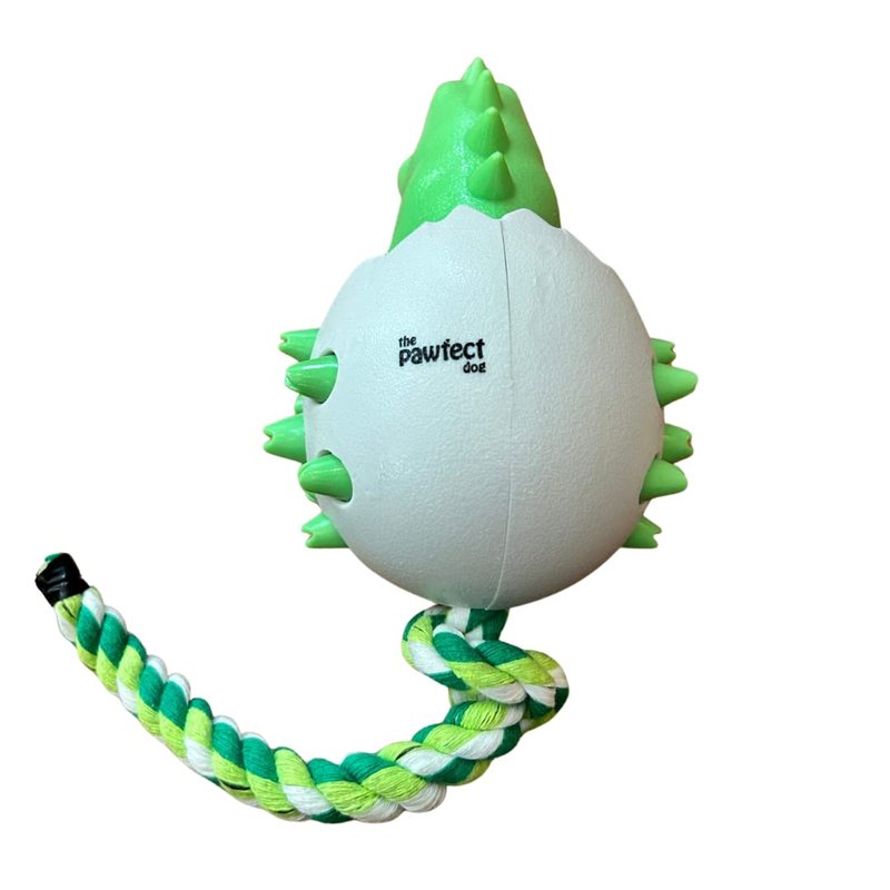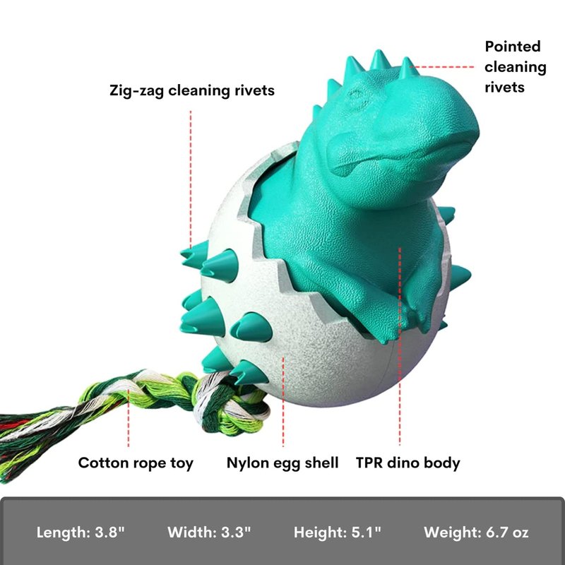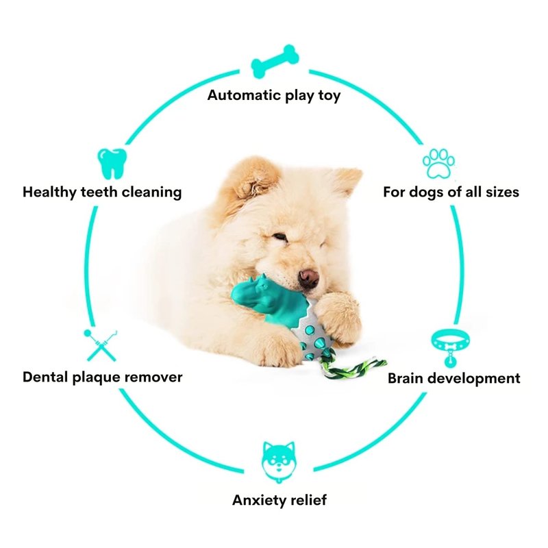 Your dog's new dentist... The #1 toothbrush toy that automatically cleans while your pet plays. Keep your pup's teeth clean, white and pearly! Exercise both physically and intellectually Maintain canine mouth health with playful brushing Entertain on auto-pilot, even while you're away THE BEST WAY TO MAINTAIN MOUTH HEALTH: The Pawfect Teeth Toy is an interactive motion-based pet toy that not only entertains your pup for hours on end, but auto-cleans his or her valuable pearly whites! Its innovative design includes a highly durable material set specifically designed to withstand TONs of chewing and of course, a playfully engaging self-serve teeth brushing system - your furry kids won't even know they're at the dogo dentist! The toy functions completely autonomously while promoting the top notch bodily health (and great smelling breath!) your dog deserves. KEY FEATURES & SIZE DETAILS: Multi-functional dog toy and dinosaur companion! Highly durable, safe nylon and thermoplastic material Dynamic teeth massaging rivets to clean comprehensively Cotton rope component for interactive play (tug of war!)