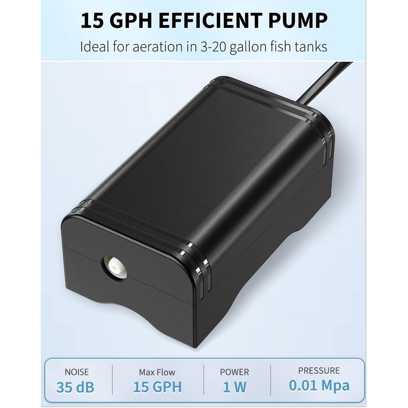 - Pump Accessories: Include a bracket, 6.5-foot standard airline tubing, an air stone, an air control valve and a check valve. All build the basic aeration setup in your fish tank.