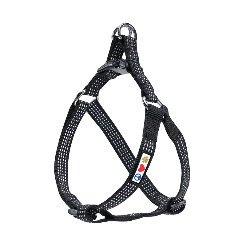 Introducing our Reflective Step-In Dog Harness, the perfect blend of style, comfort, and functionality for your furry companion. Available in extra small, medium, and large sizes, this adjustable harness is designed to cater to the unique needs of dogs of all sizes, from playful puppies to majestic adults. Key Features: No Pull Design: Say goodbye to the struggles of walking your dog with our no-pull dog harness. The innovative design ensures a secure and comfortable fit, preventing your dog from pulling excessively during walks. Puppy-Friendly: Crafted with the comfort of your little ones in mind, this harness is suitable for puppies, providing them with the support they need as they grow. The lightweight material ensures that your puppy can move freely without any restrictions. Reflective Dog Vest with a Versatile Use: More than just a puppy harness, our product is a versatile addition to your dog accessory collection. Whether you're looking for a reliable everyday harness, a service dog harness, or a stylish option for your French Bulldog or Chihuahua, our step-in harness is the perfect choice. Reflective for Safety: Safety is our top priority. The reflective features of our harness enhance visibility during low-light conditions, keeping your dog visible and safe during evening walks. Easy to Wear: The step-in dog harness design makes it a breeze to put on and take off, reducing the hassle for both you and your furry friend. Simply have your dog step into the harness, secure the straps, and you're ready for a walk in style. Upgrade your dog's walking experience with our Reflective Step-In Dog Harness. A set of matching Dog Collar and 6ft Dog Leash are available. Explore the world together while enjoying the ease, comfort, and security that our adjustable, lightweight harness provides. Because every step should be a joyous adventure for your beloved companion.