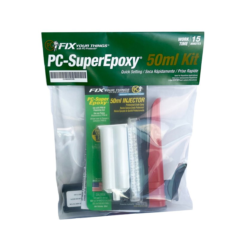 PC Products PC-Super Epoxy Adhesive Paste Kit, Two-Part with 50ml Cartridge and PPM-50 Dispensing Gun, Translucent 588
