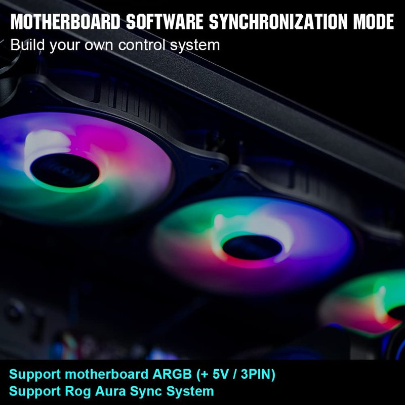 【Premium Cooling Fan】Increasing more colorful in the user's case by add the awesome ARGB light in the FX-120 ARGB Case Fan. Each 120MM rgb fan comes with 6 high-brightness LED lamp beads. Three 120MM fans provide excellent heat dissipation, add fun and bring you better gaming experience.