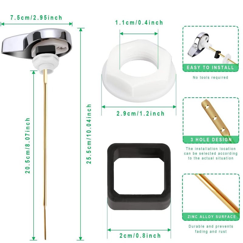 - Material: Brass, alloy and plastic, toilet flusher replacement kit, metal plating wrench with copper lever, not easy to rust, highly durable handle arm construction, strong and durable for long time use.