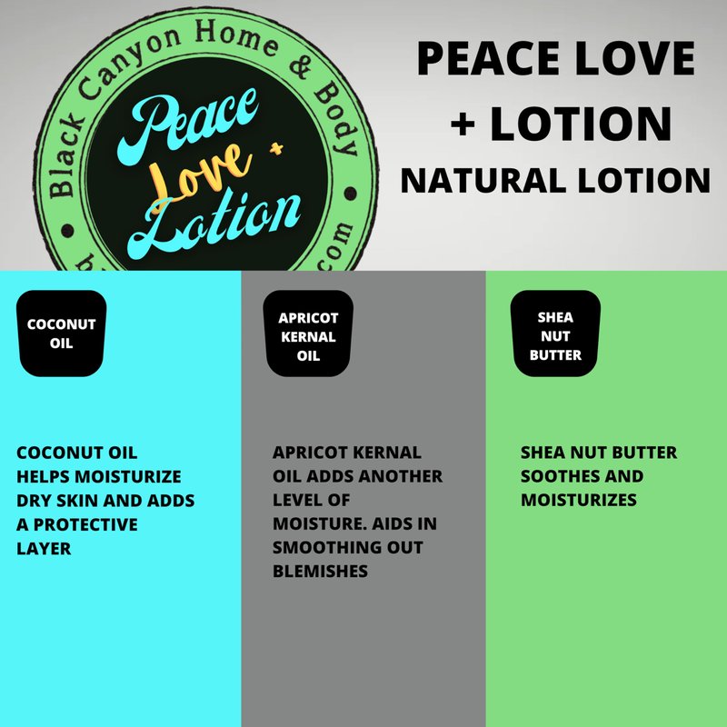 - Peace Love + Lotion is Black Canyons Natural and Organic product line