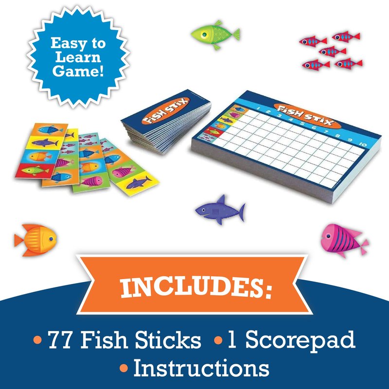 - WHO CAN PLAY: Play this fun game with 2 to 4 players. Includes 72 fish sticks, 1 score pad, and instructions. Play with or without a strategy for different ages and skill levels.