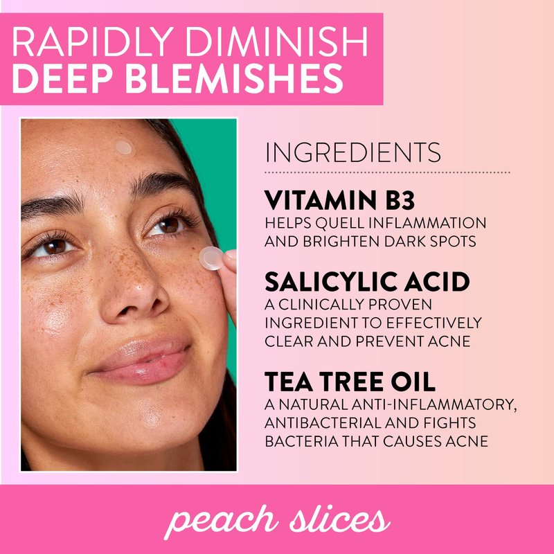 Peach Slices | Deep Blemish Microdarts | Acne Patch | Early Stage & Deep Pimples | Fast-Acting | Salicylic Acid | Tea Tree Oil | Niacinamide | Cica | Hyaluronic Acid | Spot Treatment | 9 Patches