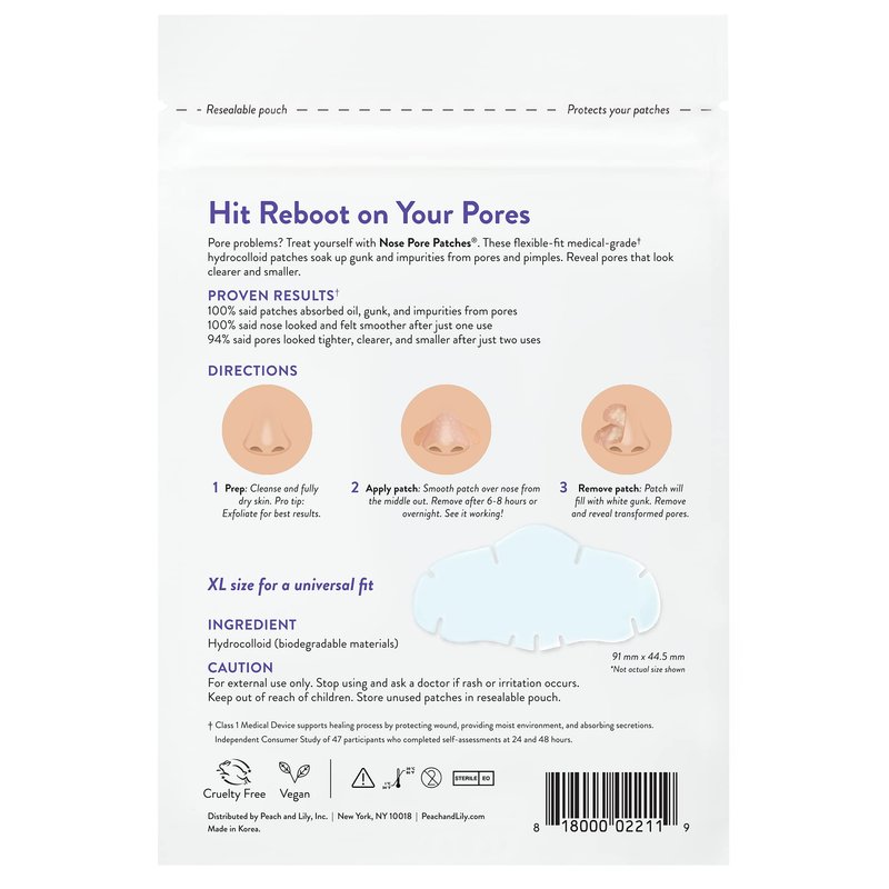 Peach Slices Nose Pore Patches deliver clearer, tighter-looking pores in just 6 hours. A medical-grade hydrocolloid patch targets pores and pimples, effectively absorbing oil and gunk while you sleep. Patches peel off gently leaving pores and skin clear and residue-free in the morning.