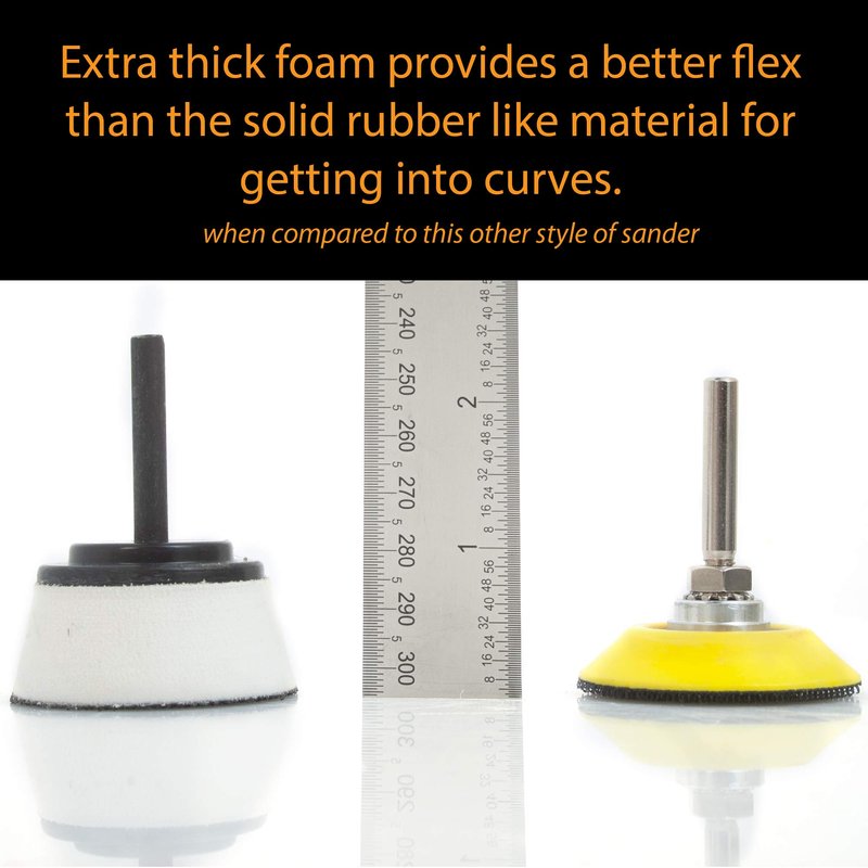 - Our 1”, 2” and 3” Sanders are perfect for getting in those tight radius that regular sanders cannot. Typical Disc holder are hard and rigid and won't allow you to sand or get into curved areas. Whether the curve is convex or concave the soft thick pad on our sanders allow you to easily work those areas. Works great for woodworkers and even on some automotive applications.