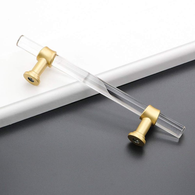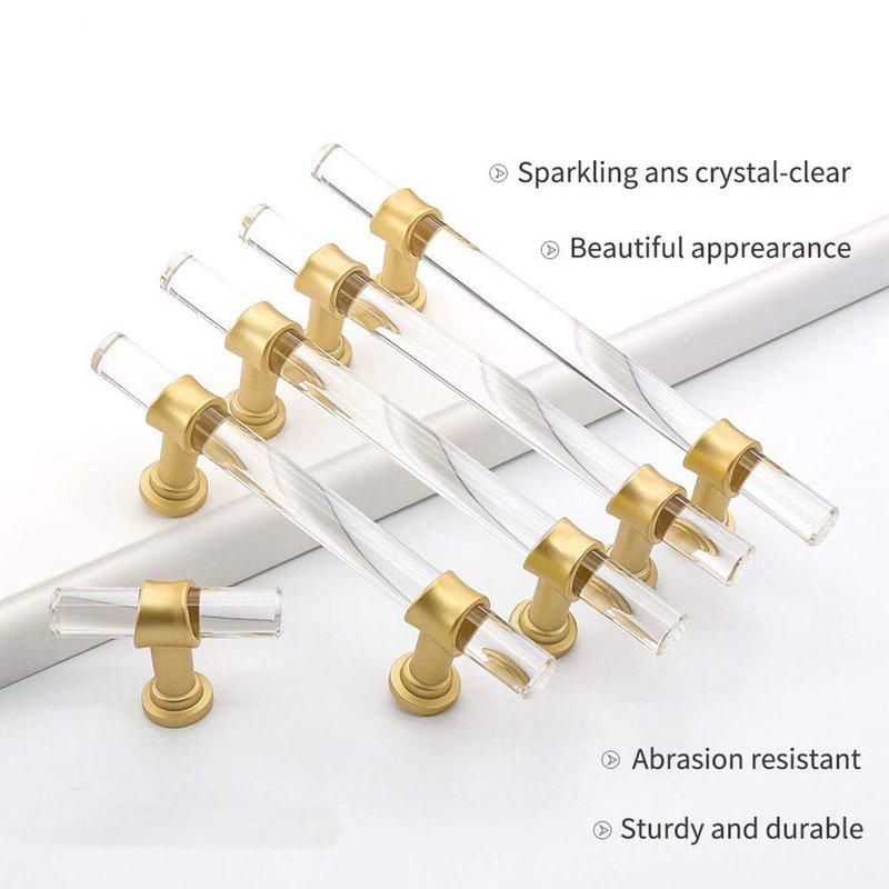 Gold Kitchen Cabinet Hardware Acrylic Drawer Pulls Perfect decoration to your home. -Our clear acrylic cabinet pulls have Smooth, Beautiful Finish. Solid structure and shiny&glittering appearance, Simple and most economical way to make your room look more elegant. Designed from high quality, Mental & Acrylic handles -Classical Hardware suit for cabinet dresser drawer cupboard wardrobe closet desk and so on