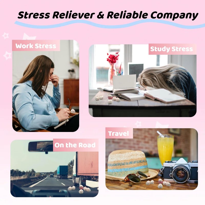 - Stress Relief and Fun - The squishy is a lovely desk decor and cheers up your work space, accompanying you in anticipation of Monday grind; When frustrated or stuck in traffic, the mochis sit on driver’s side console saying hello to you; the mochi squishy toy is designed for those with extra energy or high stress anxiety levels, promoting a sense of calm, reduce stress, anxiety and increase focus and attention.