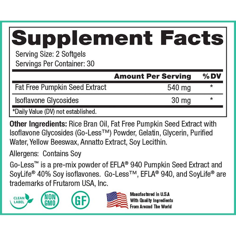 - GO LESS SUPPLEMENT: Soylife is a natural plant estrogen called Phytoestrogen to help balance estrogen levels to help support stronger bladder function. EFLA 940 pumpkin seed extract helps support bladder and kidney health.