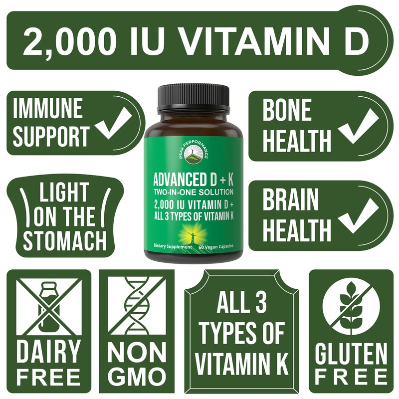 - Most brands only give Vitamin D and miss out on it's important combination with Vitamin K. Peak Performance Vitamin D with All 3 Types Of Vitamin K for Strong Bones!*