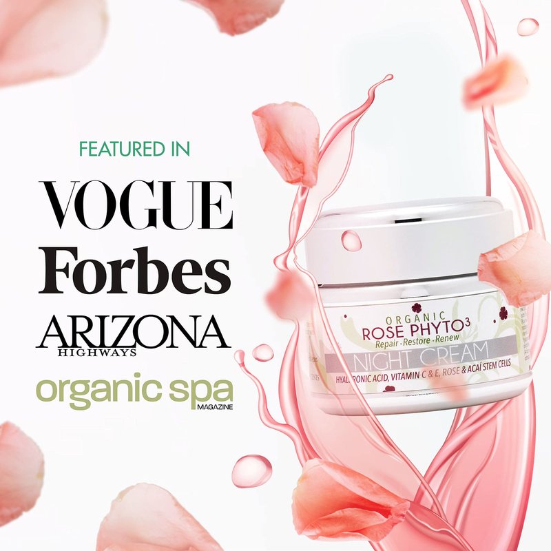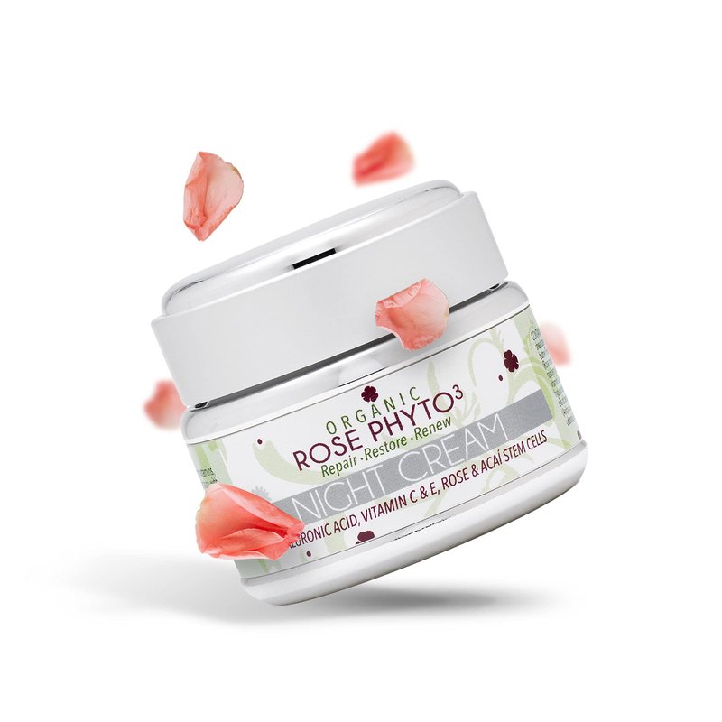 Peak Scents Organic Rose Phyto³ Night Cream with Hyaluronic Acid - Anti-Aging Face Moisturizer for Women - Wrinkle Cream with Rose Water, Vitamin C & E, and Acaí Stem Cells (2 fl. Oz)