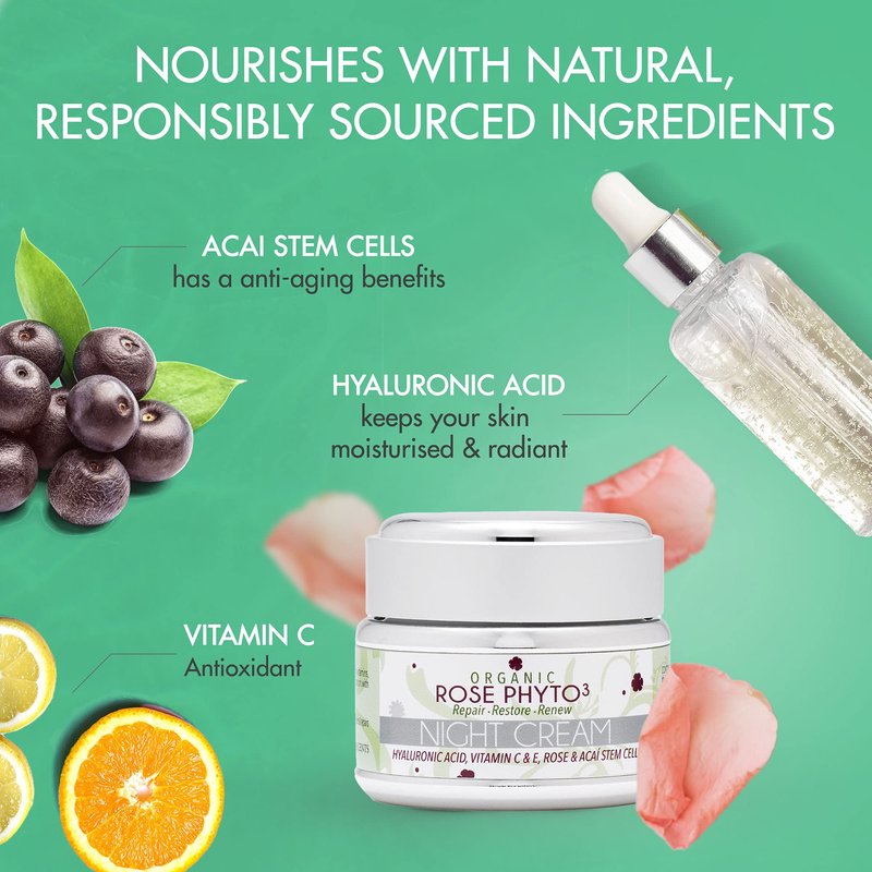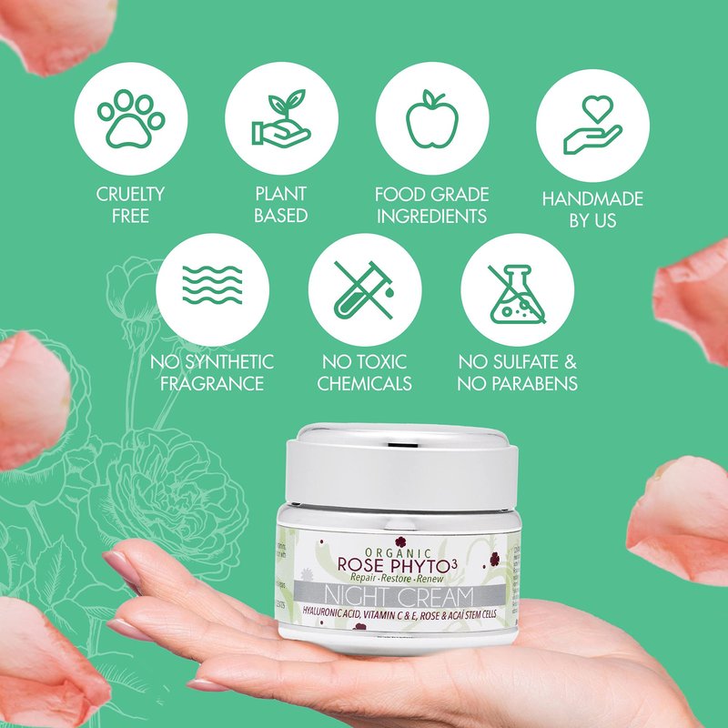 - ORGANIC & NATURAL INGREDIENTS: Packed with the goodness of organic and natural ingredients like Hyaluronic Acid and Rose Water, this night cream is designed to rejuvenate your skin while you sleep, so you can wake up without dry skin.