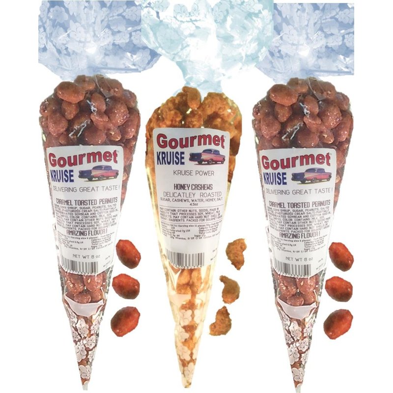 Peanuts (2) Caramel Toasted (1) Cashews Honey Roasted Delicately (NET WT 20.5 OZ) Gourmet Kruise Signature Gift Bags