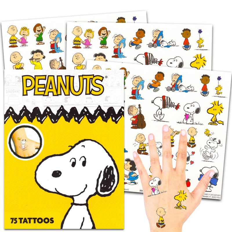 - This Peanuts tattoo bundle comes with 3 sheets of temporary tattoos for a total of 75 tattoos featuring favorite Peanuts characters including Charlie Brown, Snoopy, and more.