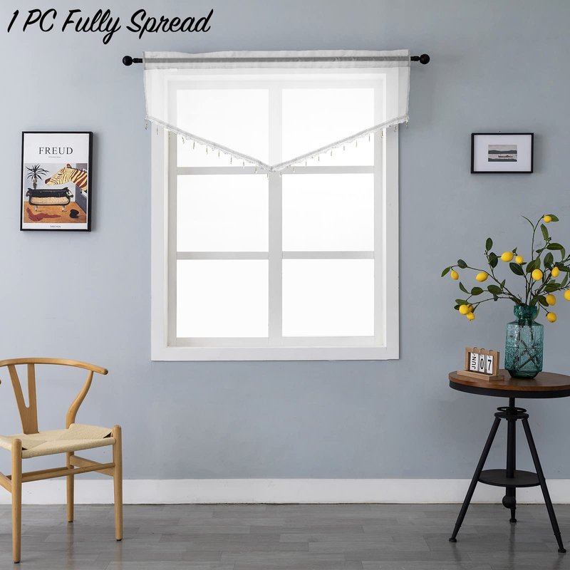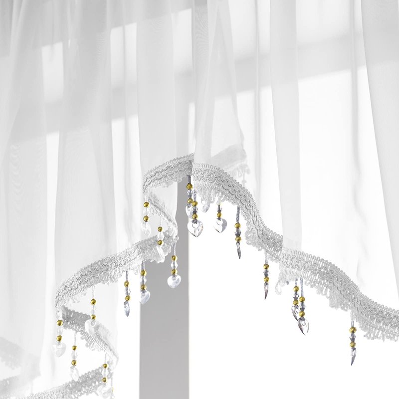 - PERFECT FOR DIFFERENT ROOM: Beaded Ascot Sheer Valance is Suitable for Farmhouse Kitchen Window, Dinning Room,Also Great for Kids,Girls,Baby Room,Coffee Office Small Window.You Can Even Use it to Decor Your Front Doorway, Patio Etc.