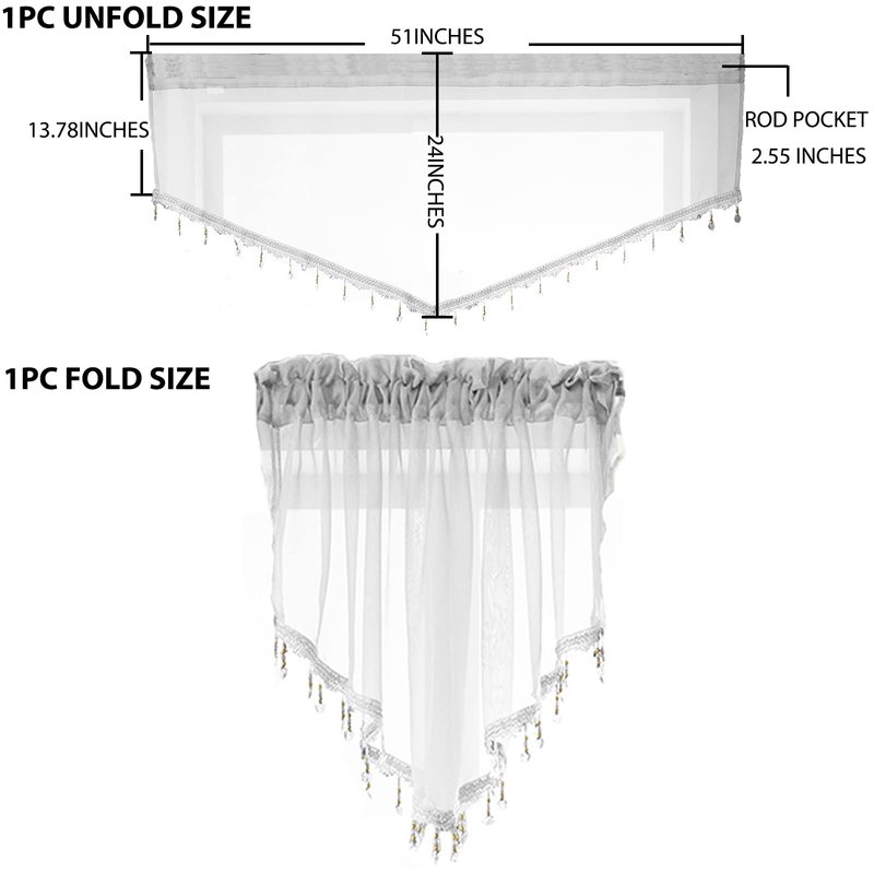 - CUSTOMER SERVICE GUARANTEE: Any Issue About Beaded Ascot Window Treatment Sheer Valance Curtains, Please Don`t Hesitate to Contact Us. We Will Reply to You with 100% Satisfaction Solution. Package: 1PC Ivory 51x24 Inches Bead Trim Sheer Window Valance Curtains.