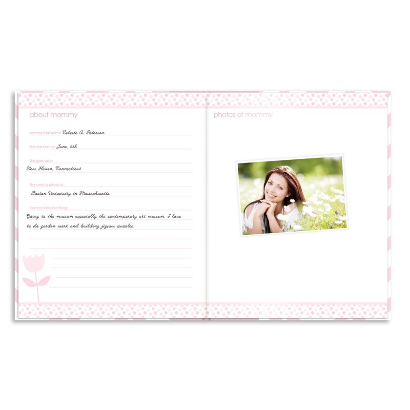 - 50 Guided Journal Pages: who this book belongs to, about mommy, about daddy, mommy and daddy’s story, family tree, mommy’s pregnancy journey, doctor visits, baby shower, gift and guest list, delivery/birthday!, special page to include prints from hospital, birth announcement, visitors/gifts, homecoming, and the world I came into