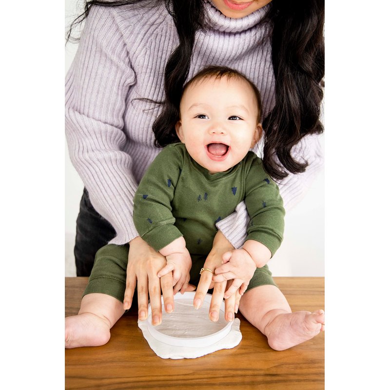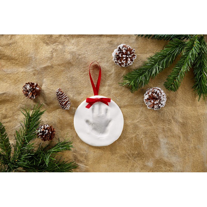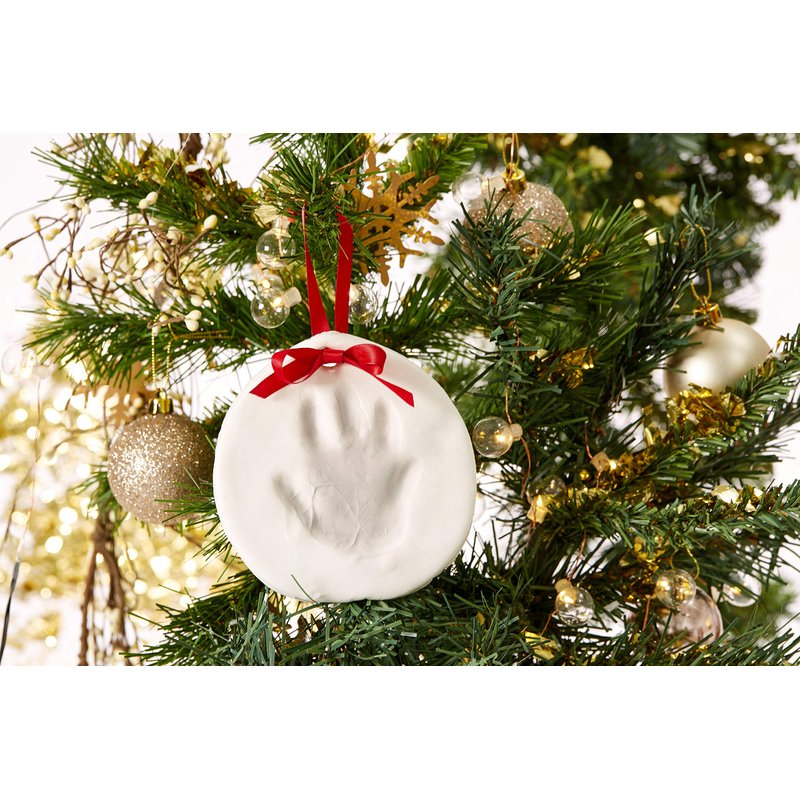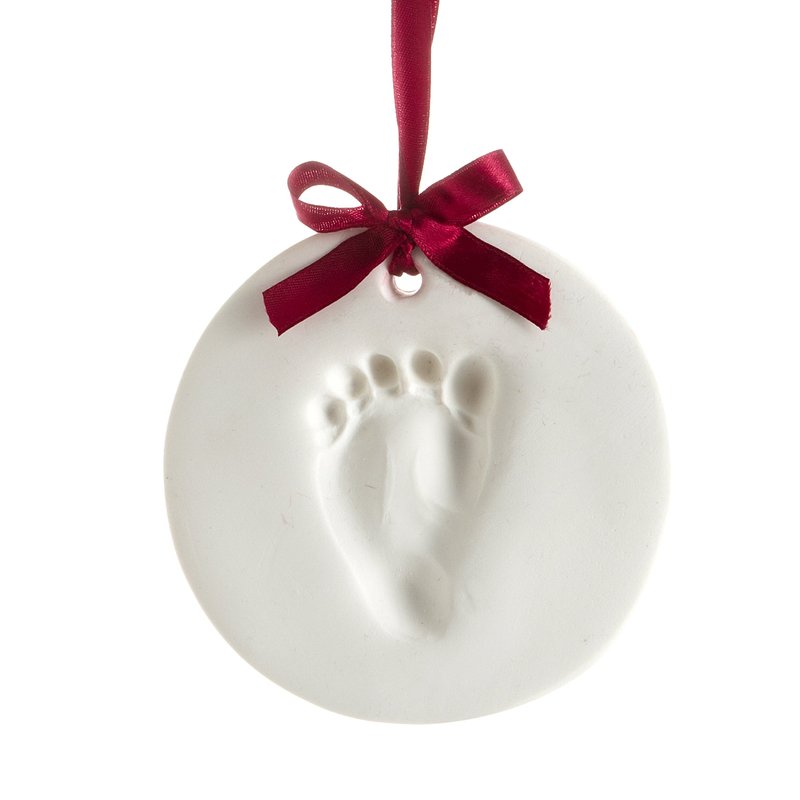 - This kit has everything you need to make your baby’s adorable little print including: 100% baby safe impression material; shaping ring; festive red satin ribbon; and a pin to create the ornament hanging hole