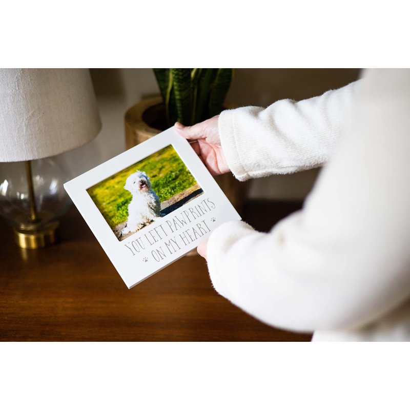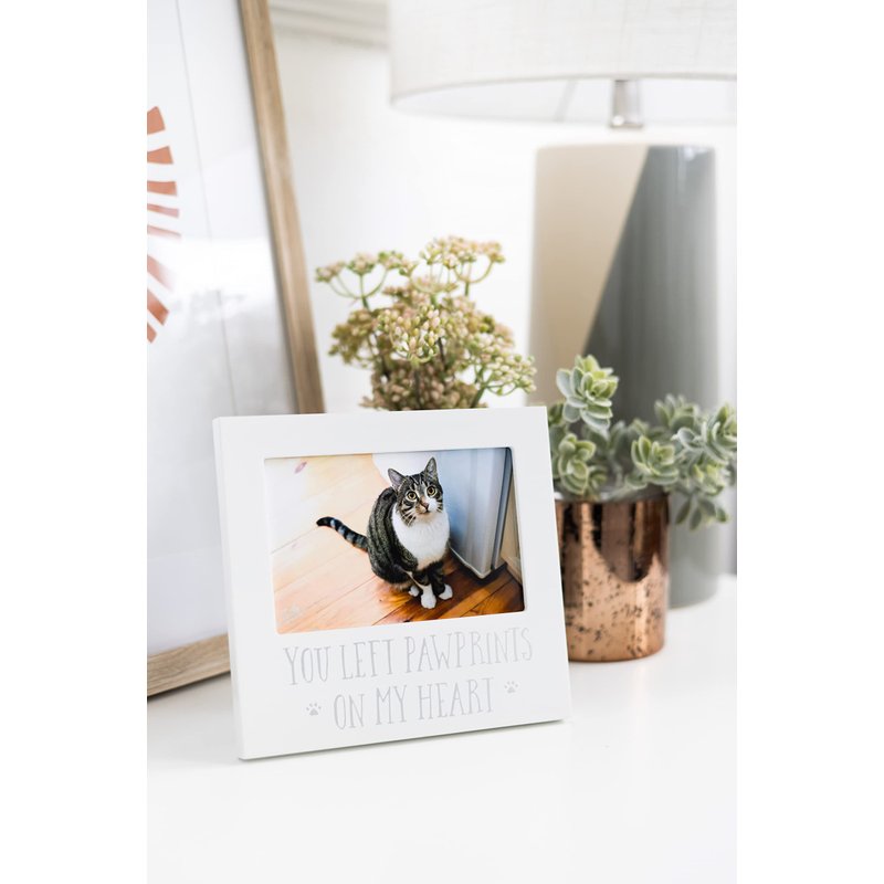 Pearhead You Left Pawprints on my Heart Pet Keepsake Picture Frame, Dog or Cat Photo Frame for Pet Owners, Pet Memorial Frame, 4x6 Photo Insert, Sympathy Gift, White
