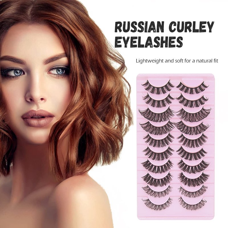 - CAT EYE & RUSSIAN STRIP LASHES - Flared D Curly design graduates to longer lengths at the outer corner for a cat-eye lifting effect,multi-layering creates a fluffy and fluttery lash appearance.