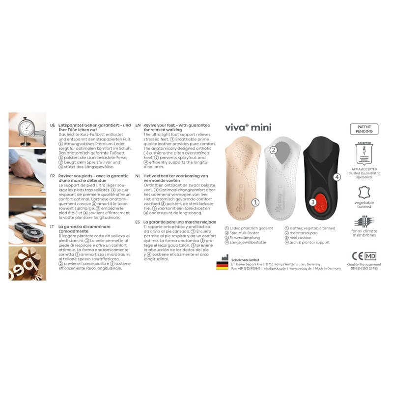 - Medically Recognized - The Pedag Viva Mini has been awarded the APMA Seal of Acceptance, which is recognition by the American Podiatric Medical Association that the product promotes foot health.