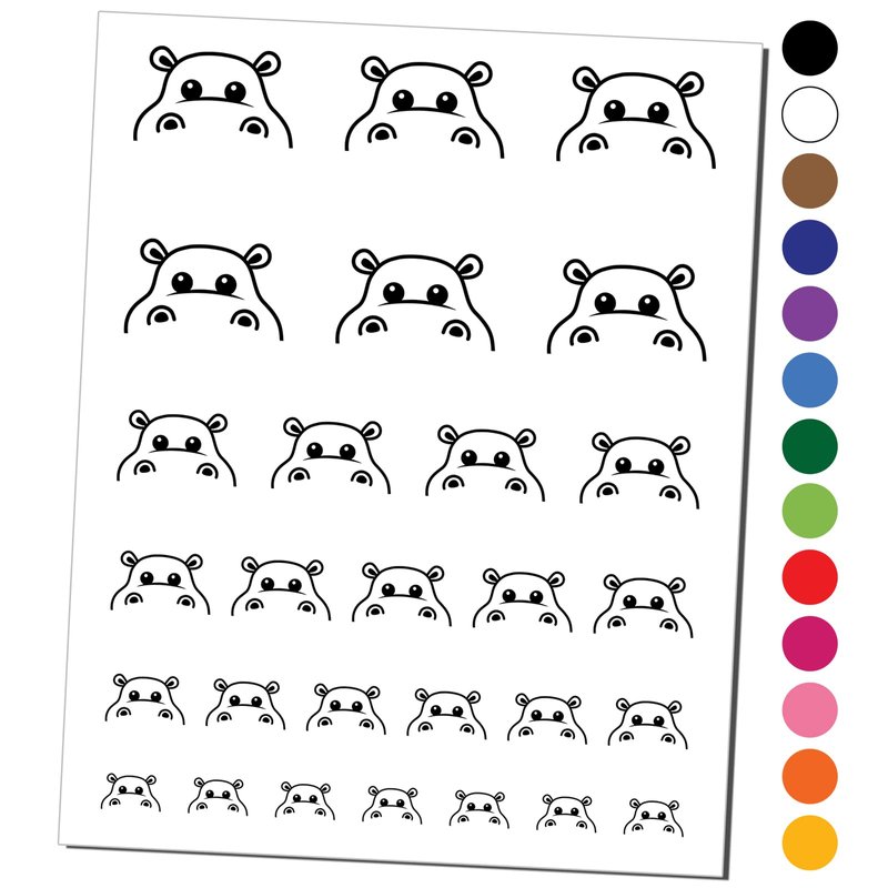 Peeking Hippopotamus Temporary Tattoo Water Resistant Fake Body Art Set Collection - Black (One Sheet)