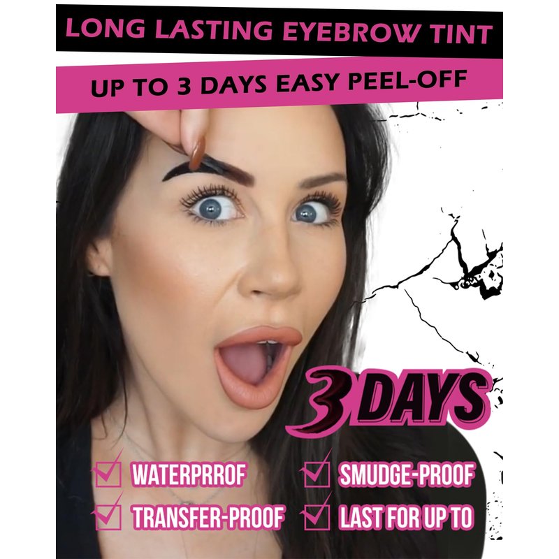 - LASTS 3 DAYS & SMUDGE PROOF - Formulated with hypoallergenic ingredients, our tattoo eyebrows waterproof peel off tinted is designed for smudge-free 3-day wear without fading, waterproof and sweat resistant. Its water resistant formula and huge color payoff lock your brows in place without smudging or flaking, even in the pool.