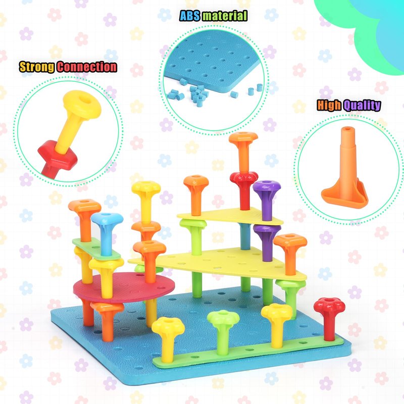 - Upgraded version safety: The upgraded plastic pegboard toy, each part does not have sharp corners, great hand feel so that children's fingers are comfortable, the product has passed the international testing and certification CPSIA and ASTM