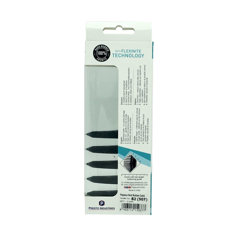 Pegasus 507_b2, 6.5in Curved Detangling Handled Styling Rake Comb, Pegasus 507 B2, Anti-Static, Seamless Teeth, Heat and chemically resistant. Hand crafted from hard rubber, with Flexinite Technology, these amazing combs are temperature and chemically resistant. Professional grade, durable, strong, lightweight, portable won't tangle hair and lose hair. Best for hairstyling, detangling, parting hair, back combing, hair coloring and post styling hair. Thick hair, thin hair, curly hair, all hair types. Smooth, durable and comfortable seamless teeth avoid pulling or tangling hair. It glides through your hair and allows you to shape your hair, adds brilliant shine and luster to dull hair, your hair and scalp will be healthier with regular exposure to the natural oils. Your go to comb for everyday use. Comb Measures 6.5" Wide and 2.5" Tall