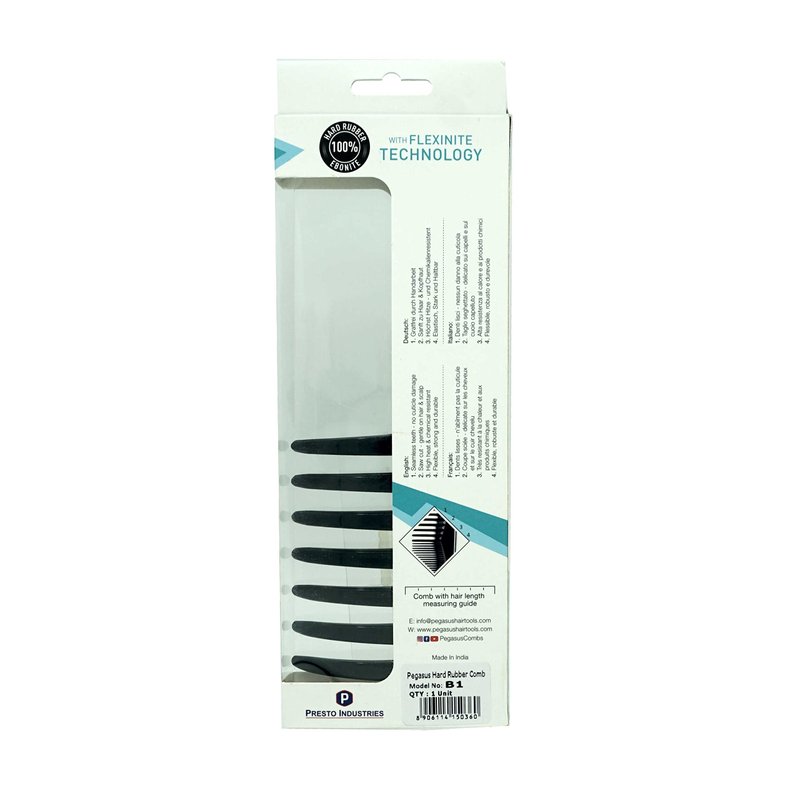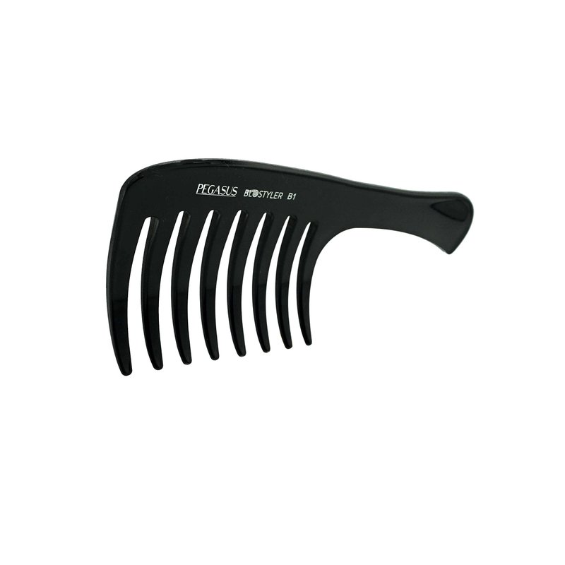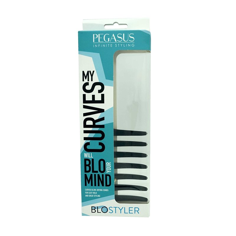 Pegasus 511_B1, 9in Curved Blow Dry Styler Comb, Anti-Static, Seamless Teeth, Heat and chemically resistant. Hand crafted from hard rubber, with Flexinite Technology, these amazing combs are temperature and chemically resistant. Professional grade, durable, strong, lightweight, portable won't tangle hair and lose hair. Best for hairstyling, detangling, parting hair, back combing, hair coloring and post styling hair. Thick hair, thin hair, curly hair, all hair types. Smooth, durable and comfortable seamless teeth avoid pulling or tangling hair. It glides through your hair and allows you to shape your hair, adds brilliant shine and luster to dull hair, your hair and scalp will be healthier with regular exposure to the natural oils. Your go to comb for everyday use. Comb Measures 9" Wide and 3.5" Tall