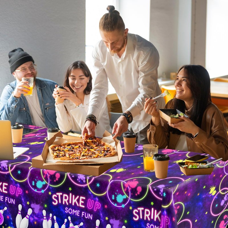 - 【Delicate Design】The bowling birthday party table cover features a charming purple and colorful bowling ball pattern, printed with "Let's Strike Up Some Fun" fun text, painted paint, and other bowling game elements. The visually appealing design adds excitement and enhances the atmosphere, making it the preferred choice for bowling themed parties.