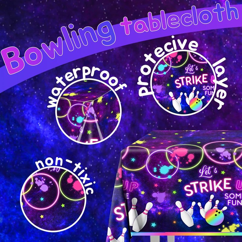 - 【Reliable Material】bowling party decorations tablecloth is made of plastic materials, with clear patterns, pure colors, smooth and waterproof surface, so as to protect your table and make it easy to clean.After use, you can throw away the waterproof tablecloth with food residues.