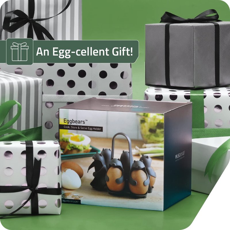 Peleg Design Eggbears 3-in-1 Cook, Store and Serve Egg Holder, Bear-Shaped Boiled Egg Cooker for Making Soft or Hard Boiled Eggs, Holds 6 Eggs for Easy Cooking and Fridge Storage