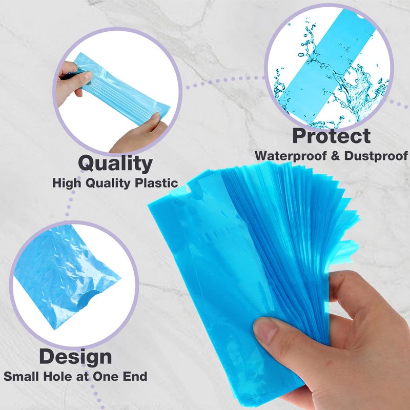 Pen Covers and Grip Tapes - Usiriy 200pcs Machine Pen Bags and 4pcs Grip Tape Wrap Blue Plastic Pen Sleeves with Black Self-adhesive Bandages Covers Machine Cover kit