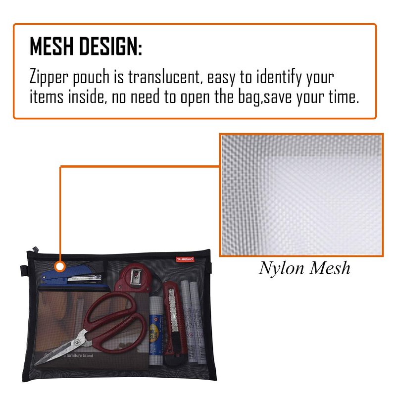 - MESH DESIGN: Mesh zipper pouch is translucent, easy to identify your items inside, no need to open the bag, saves your time.