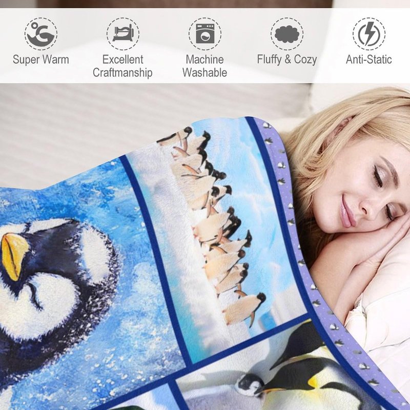 Penguin Blanket Penguin Gifts Animal Penguin Decor Pictures Snow Penguin Throw Blanket for Sofa Couch Bed Living Room Soft Warm Cozy for Adults Kids Men Women 40"x50"