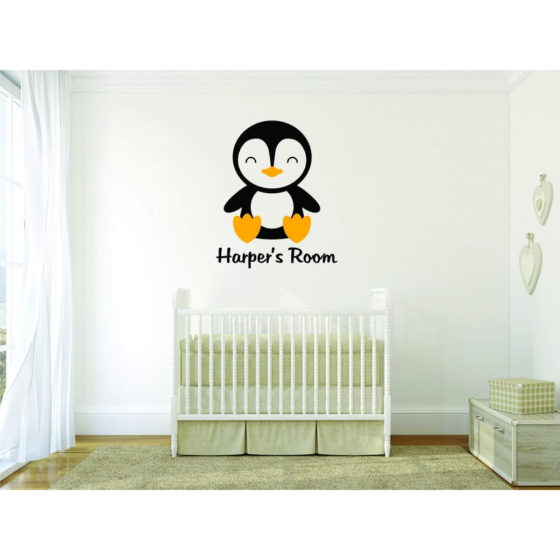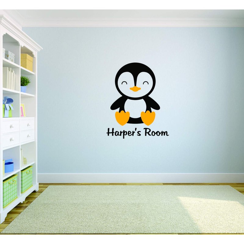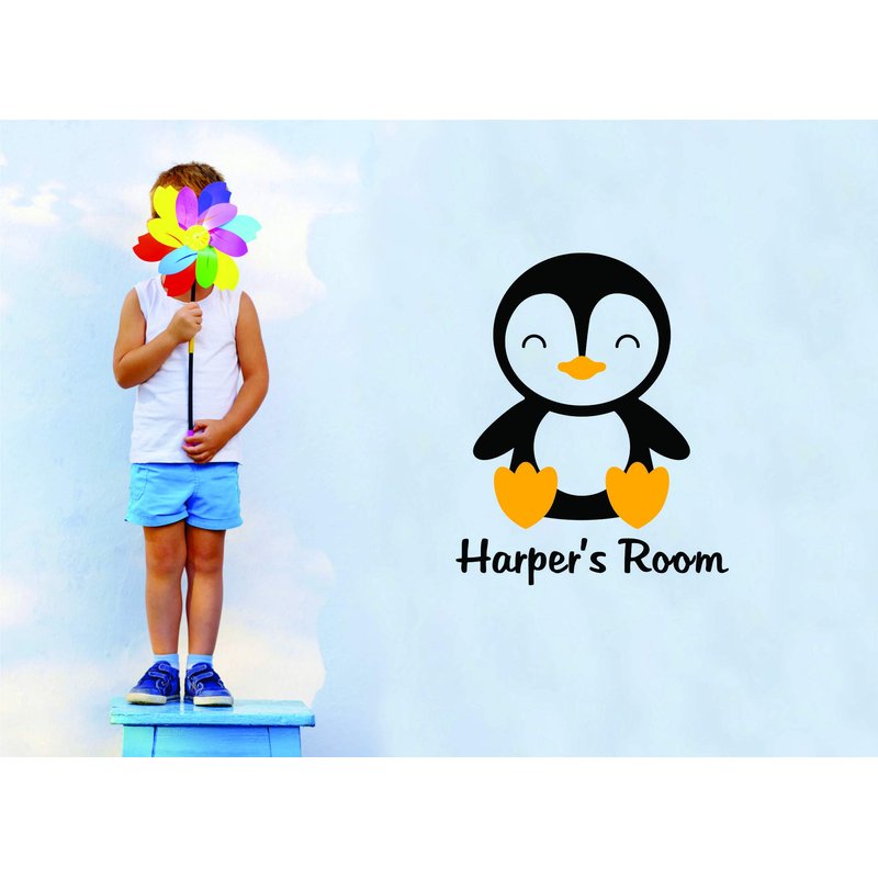 Penguin Penguins Kids Boys Girls Room Decor Animals Childrens Wall Decal - Custom Monogram Vinyl Wall Art - Personalized Name Vinyl Lettering - Size 20x20 Inches