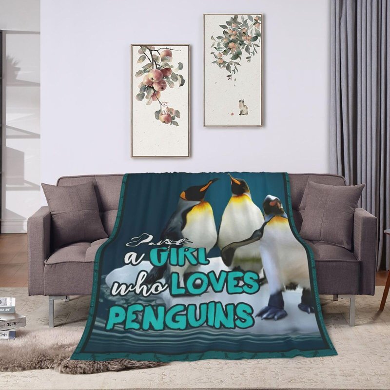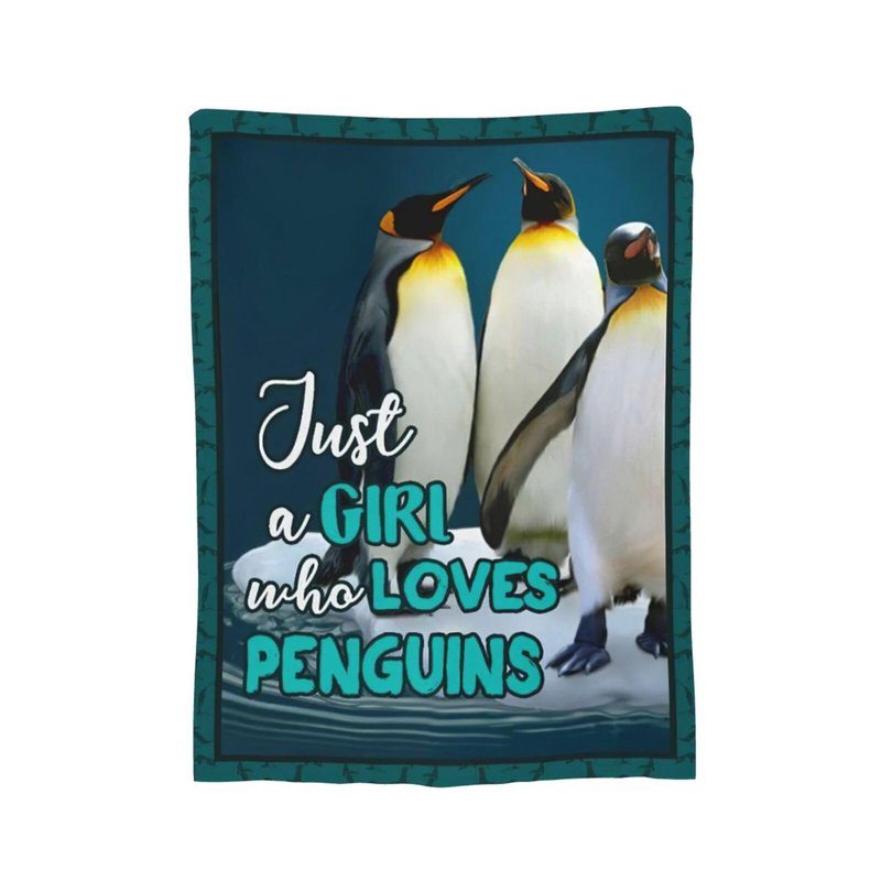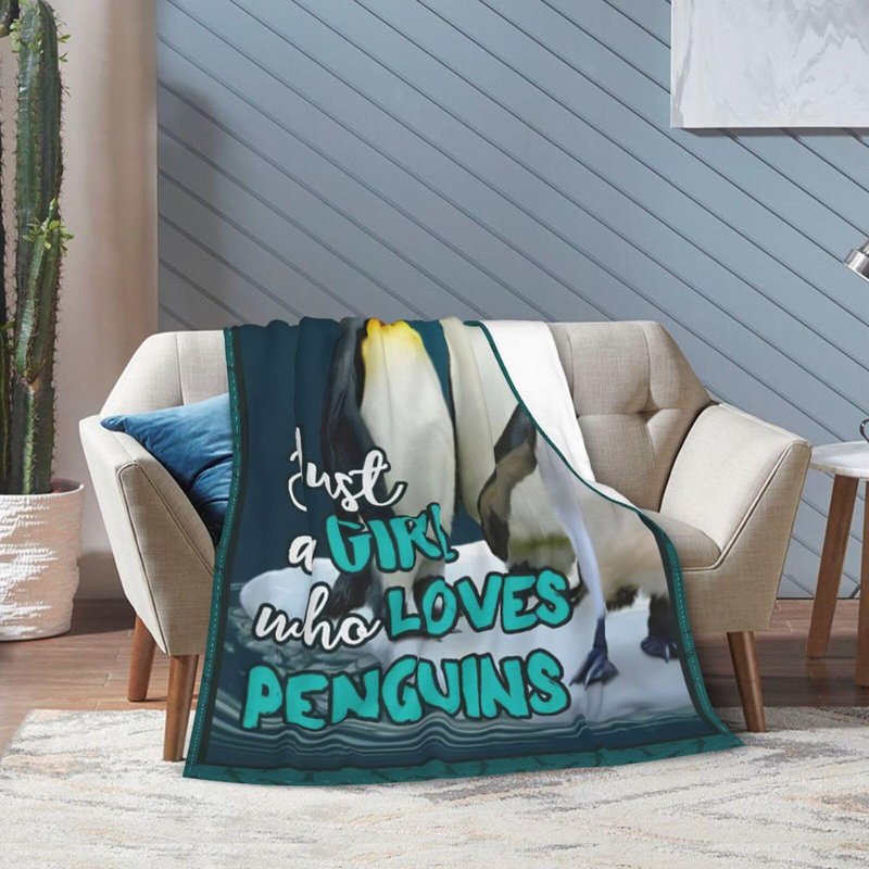 Penguins Blanket Just A Girl Who Loves Penguins Throw Blanket Penguin Stuff Decor Merch Cozy Flannel Soft Warm Plush Lightweight Bedding Penguin Gifts for Girls Woman Sofa Bedding Couch 50"X40"