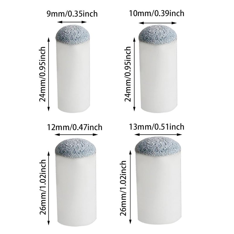 - SIZE - Length of cue tip replacement is approx. 3 cm, 4 different diameter is 9mm, 10mm, 12mm, 13mm