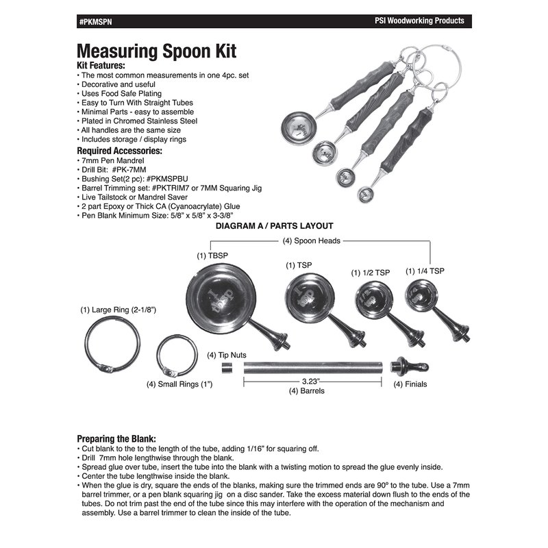 - Includes (1) PKMSPN Woodturning Measuring Spoon Set Kit.