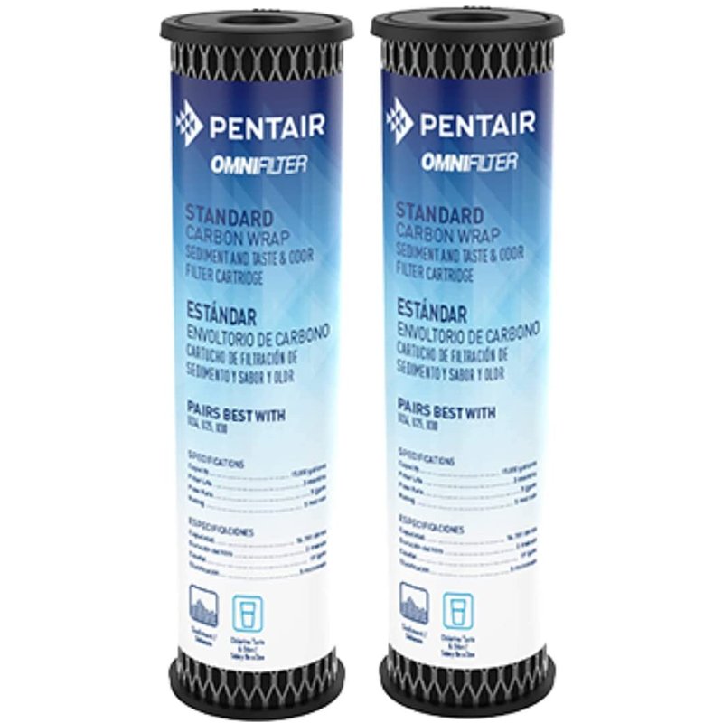 Pentair OMNIFilter TO1 Carbon Water Filter, 10-Inch, Standard Whole House Carbon Wrap Sediment and Taste & Odor Replacement Filter Cartridge, 10" x 2.5", 5 Micron, Pack of 2