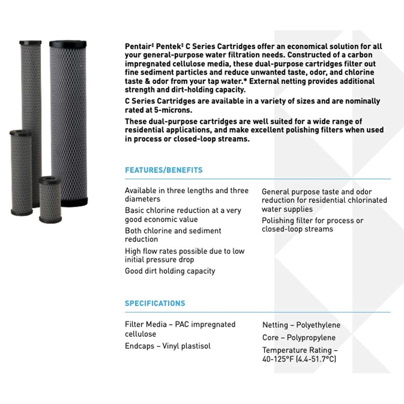 Pentair Pentek C1 Carbon Water Filter, 10-Inch, Under Sink Dual Purpose Powdered Activated Carbon-Impregnated Cellulose Replacement Cartridge, 10" x 2.5", 5 Micron, Black