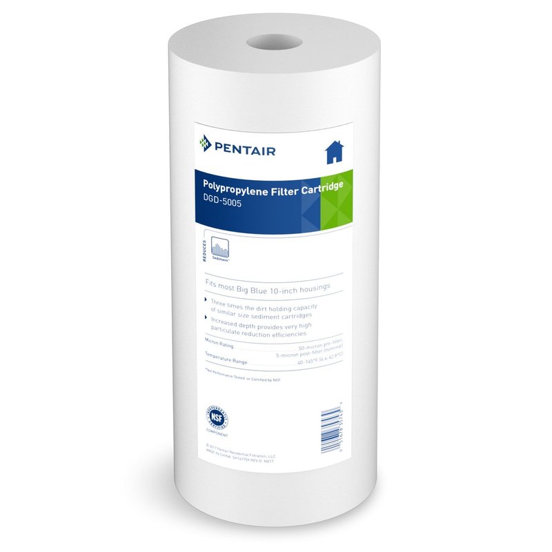 Pentair Pentek DGD-5005 Big Blue Water Filter, 10-Inch Whole House Sediment Filter Cartridge Replacement, Dual-Gradient Density Spun Polypropylene, 10" x 4.5", 5 Micron, Pack of 1