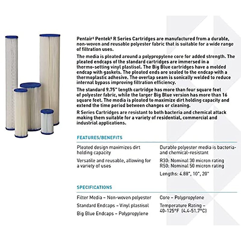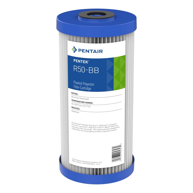 Pentair Pentek R50-BB Big Blue Sediment Water Filter, 10-Inch, Whole House Pleated Polyester Filter Cartridge, 10" x 4.5", 50 Micron