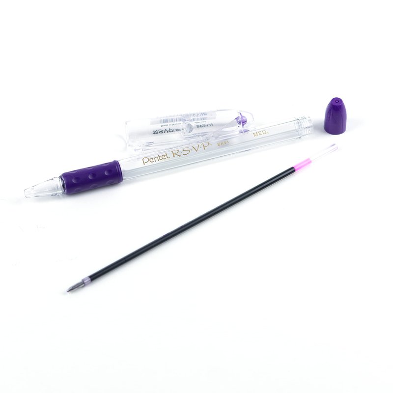Pentel BK91V R.S.V.P. Stick Ballpoint Pen, 1mm, Trans Barrel, Violet Ink (Pack of 12)