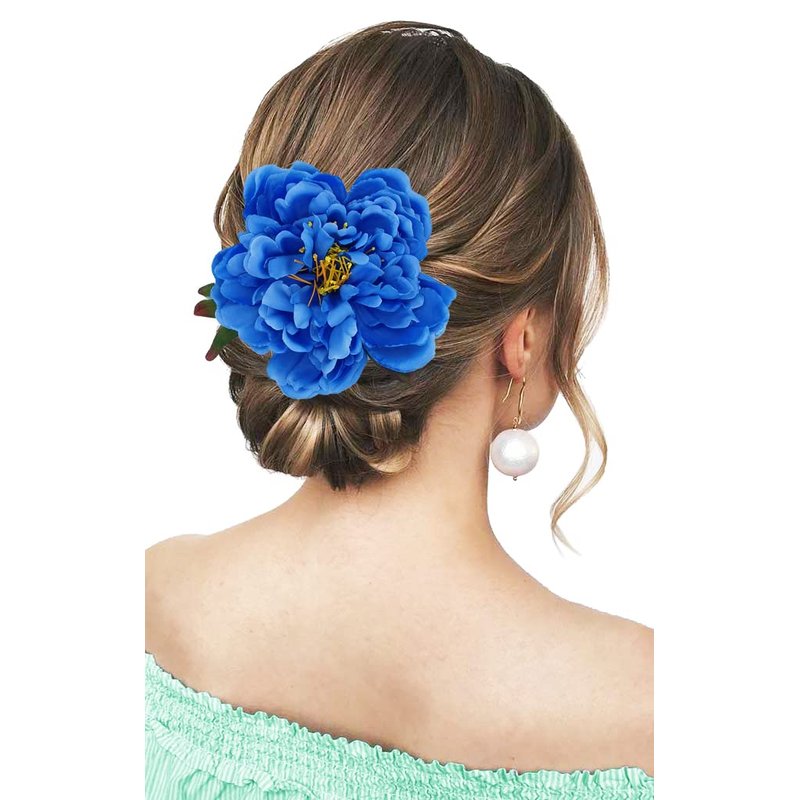 Peony Flower Hair Clip Hanfu Hairpin Bridesmaid Pin up Flower Brooch Party Wedding Decor (one size, blue)