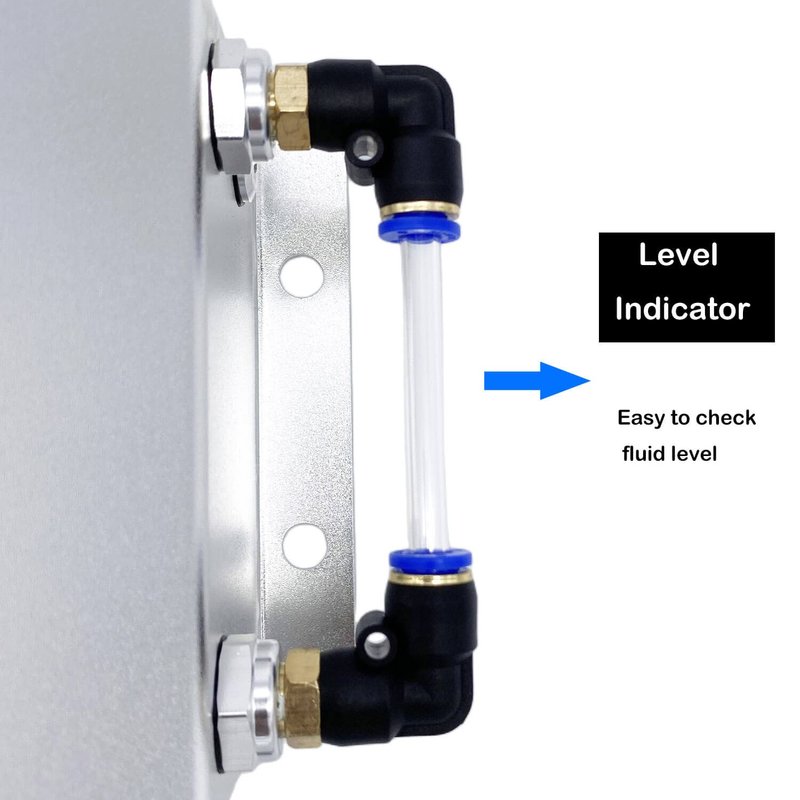 - Level indicator for easy reading of fluid level. Inlet and Outlet can be placed either at the right hand side or left hand side. Prevents leaks by helping relive pressure while increasing horsepower.