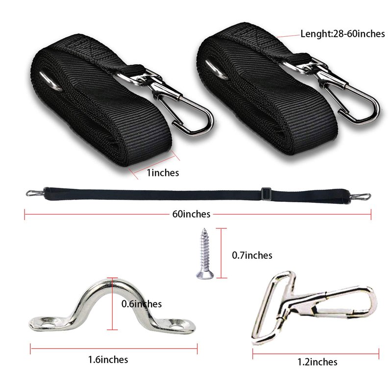 - Package includes:2 pcs marine premium top straps with two side snap hooks and 2 pcs stainless steel eye straps and 2 pcs stainless steel hook clips and 4 pcs screw to use for people who want double hook clip on both ends and not need to other place to buy the hardware.